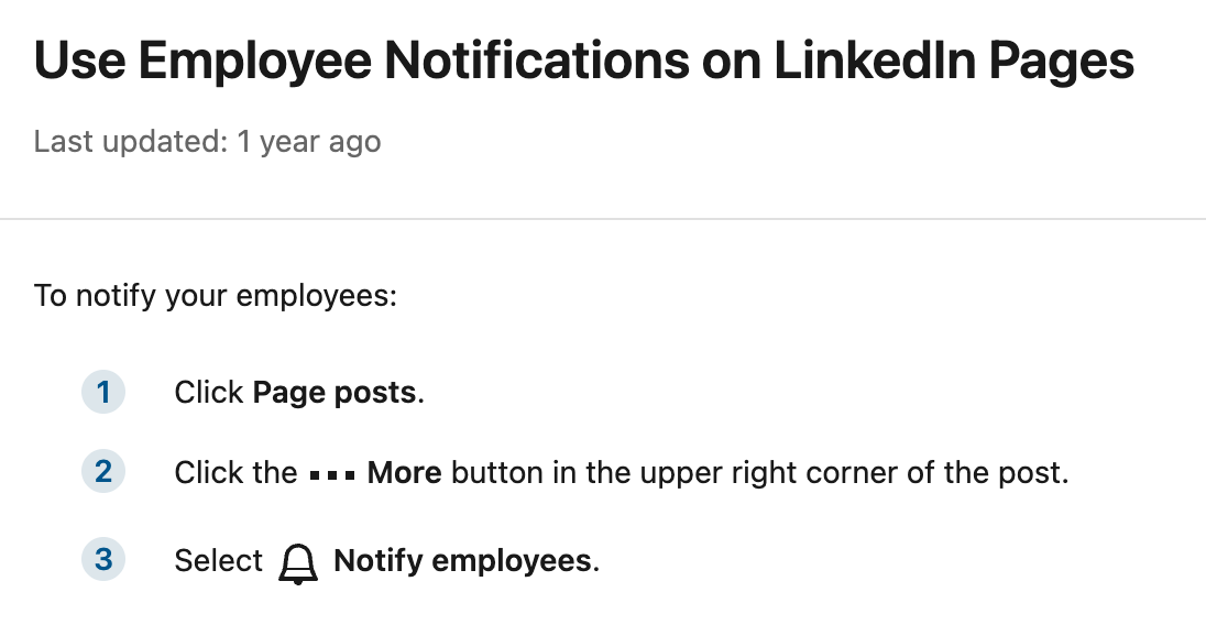 Even LinkedIn itself has a "Notify Employees" button on company pages whose only job is to nudge your team to reshare from their personal profiles.